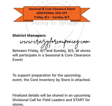 This 3-day sale will include deep discounts on seasonal clearance items and core clearance items throughout the store. If you’ve been waiting to stock up, this is your chance to save BIG on already marked-down merchandise.