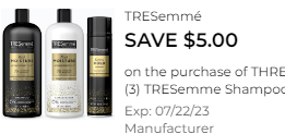 Use the $5.00 off 3 Tresemme Digital Coupon (no restrictions)