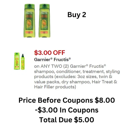 Who doesn't love a good deal on hair care products? Well, get ready to stock up because Garnier Fructis is currently 2 for $8.00 at CVS! But wait, it gets even better – with $3.00 in coupons, your total due will be just $5.00. And the cherry on top? You'll receive a $4.00 ExtraBucks reward, making the final price just $1.00 for both bottles or just $0.50 each! Keep reading to find out how you can score this amazing deal and have fabulous hair without breaking the bank. This deal can be done until 07/20/2024