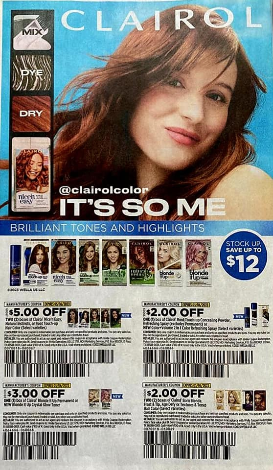 On 04/23/2023, you can expect two inserts in your Sunday papers. Remember that this list is a preview of what could be, each region can get differing coupons and different values. If you are looking for information on ordering coupons please contact Kristi Phillips our coupon supplier here by sending her a private message.