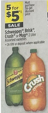 Deal; Schweppes, Brisk, Crush, or Mug, ® 2 liter