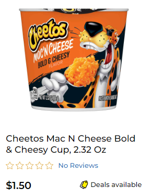 Buy 3 Cheetos Mac N Cheese Cup @ $1.50
