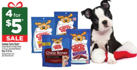 Canine Carry Outs® Chew Bones or Dog Treats; SALE 4 FOR$5.00; Nov 5th – Nov 11th 2023