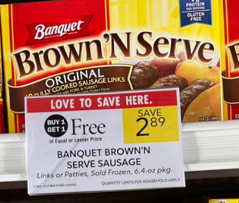 This deal can be done at Publix 10/11/2023-10/17/2023. Publix brings you some great BOGO deals on a regular basis. Brown'N Serve fully cooked sausage links and patties are sale $2.89 buy 1 get 1 free.