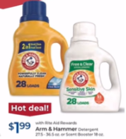 Deal; Arm & Hammer Detergent 27.5-36.5 oz or scent Booster 18 oz $1.99