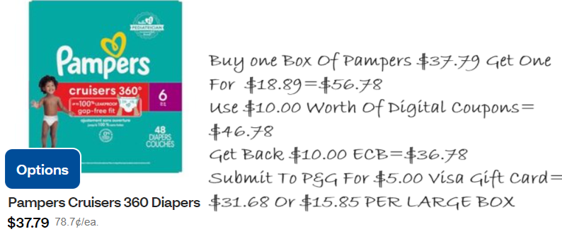 Buy one Box Of Pampers $37.79 Get One For $18.89=$56.78