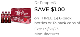 Sept 03-Sept 04, For two days only at Dollar General you can score Dr. Pepper six pack bottles for only $2.75 during the two day labor day sale.