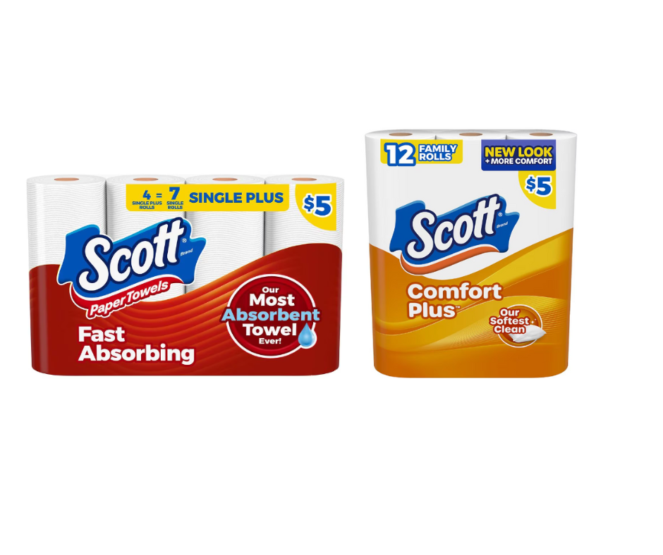 Buy (1) Scott Paper Towels 4ct or Comfort Plus 12 Big Rolls, $5.00 B1G1 50% off