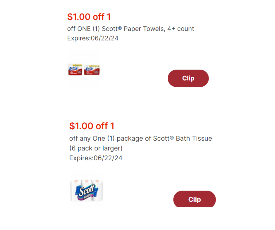 $1/1 Scott® Bath Tissue (6 pack or larger) exp. 6/22/24 Clip2card Found in your Walgreens App