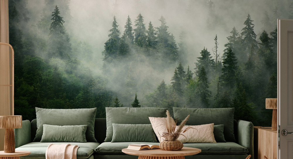 Easy to assemble and hang, "Foggy Forest" wallpaper offers a detailed and captivating portrayal of a dense, enigmatic forest, perfect for your living room. Crafted using high-quality materials and cutting-edge printing technology, this wallpaper won't fade in sunlight and is environmentally friendly with biodegradable printing ink. It's an unforgettable piece that can instantly transform your space, creating a calm and relaxed atmosphere. Let "Foggy Forest" redefine the look and feel of your room.