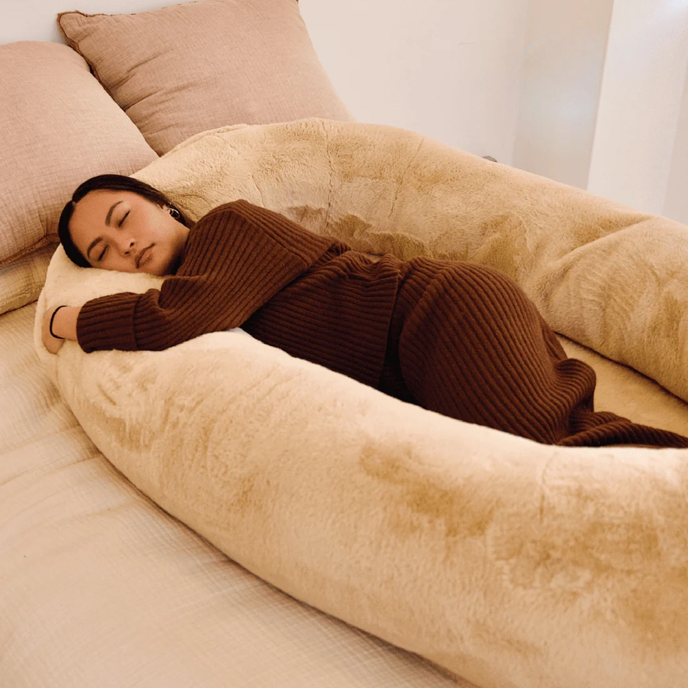 Give the gift of the ultimate napping experience with Plufl, the world's first dog bed for humans! It's 360° of plush comfort created to provide an ultra-comfortable and sleep-inducing environment.The Plufl features luxurious vegan faux fur, supportive pillow bolster all around, handles for easy transport, and a side pocket big enough for your phone or favorite read. Whether you're looking to nap, relax, or cuddle with your pets, you can do it all in the Plufl!