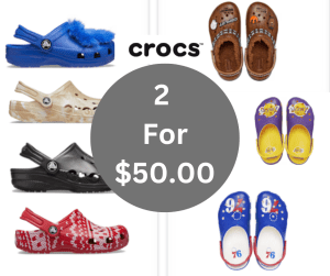 At Crocs, you can purchase two select Crocs for only $50. Just add your two selected Crocs to your cart,