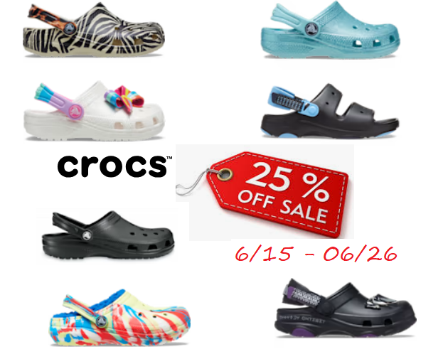 25% off Sitewide as Crocs.com! Exclusions apply. Terms & Conditions Apply. 6/15 – 06/26