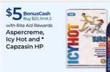 Deal; Aspercreme, Icy Hot and Capzasin HP; Spend $20.00 Get $5.00 Bonus Cash