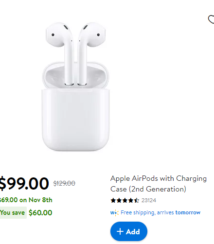 Attention all tech enthusiasts and savvy shoppers! Brace yourselves for the ultimate Black Friday deal that will make your ears perk up with excitement. Get ready to experience wireless audio bliss as Apple AirPods with Charging Case (2nd Generation) are set to be unleashed at an unbeatable price of $69.00, a whopping $30 off their original retail value of $99.00! Whether you're an online bargain hunter or prefer the thrill of in-store shopping, mark your calendars for November 8th, 3pm ET, when Walmart's Black Friday sale goes live online. And if you crave the adrenaline rush of early morning store runs, head over to your nearest Walmart on November 10th at 6am local time. Don't miss out on this extraordinary opportunity to snag these sleek and innovative earbuds – trust us when we say it’s music to your ears