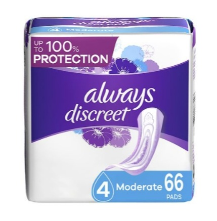 Buy 2 – Always Discreet Pads, regularly $17.99 each, on sale 2/$28 at Walgreens