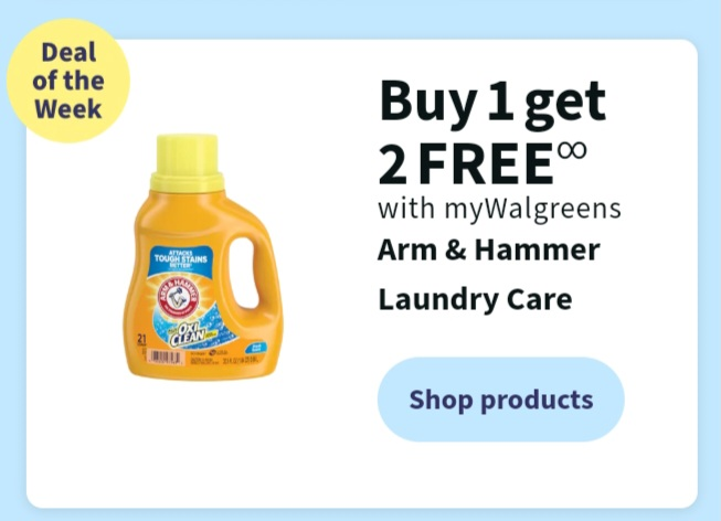 This week at Walgreens Arm & Hammer laundry products are on sale BUY ONE GET TWO FREE!! No coupons needed!