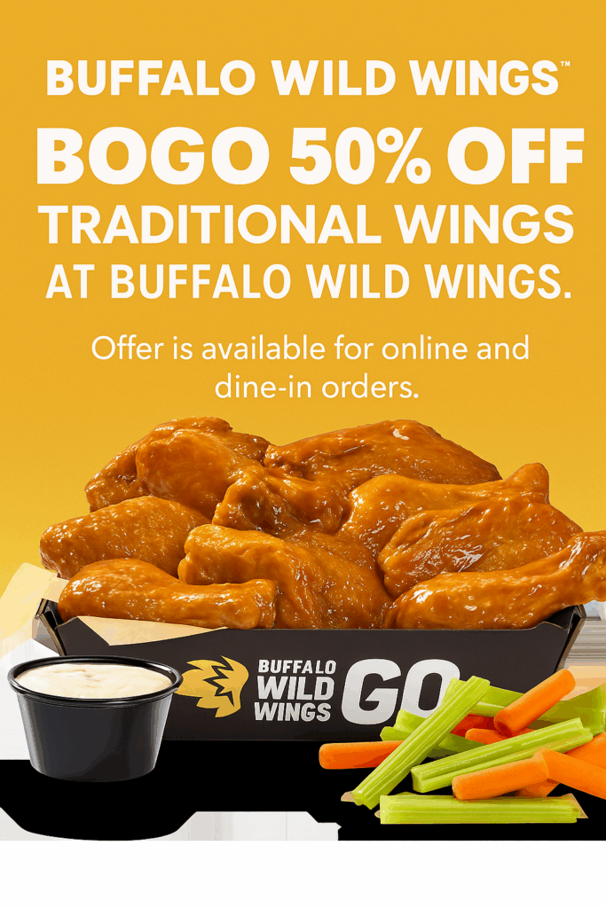 Buffalo Wild Wings often runs a “Buy One, Get One” wing deal on Tuesdays. It’s the perfect excuse to gather with friends and enjoy some finger-licking good wings without breaking the bank.