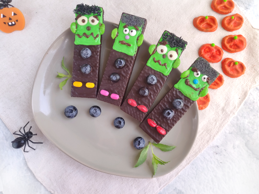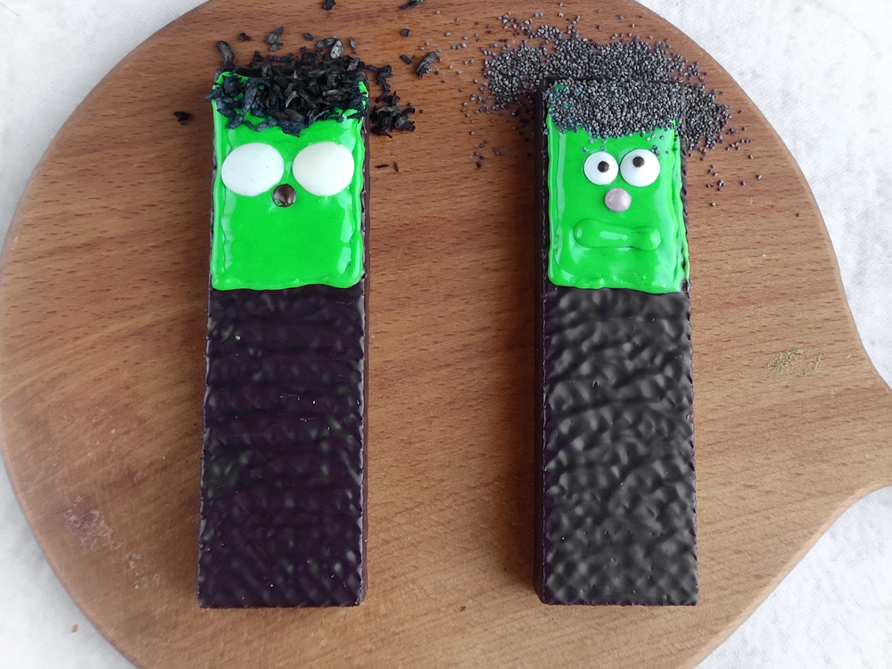 Besides the Frankenstein theme, there’s no limit to what you can create using wafer cookies as your base. Think ghosts draped in white icing or pumpkin-shaped delights adorned with orange frosting—let your imagination run wild!