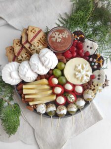 Turn your holiday gathering into a winter wonderland with this Snowfall Charcuterie board! With snowdrift-shaped meringues, creamy brie, festive cookies,