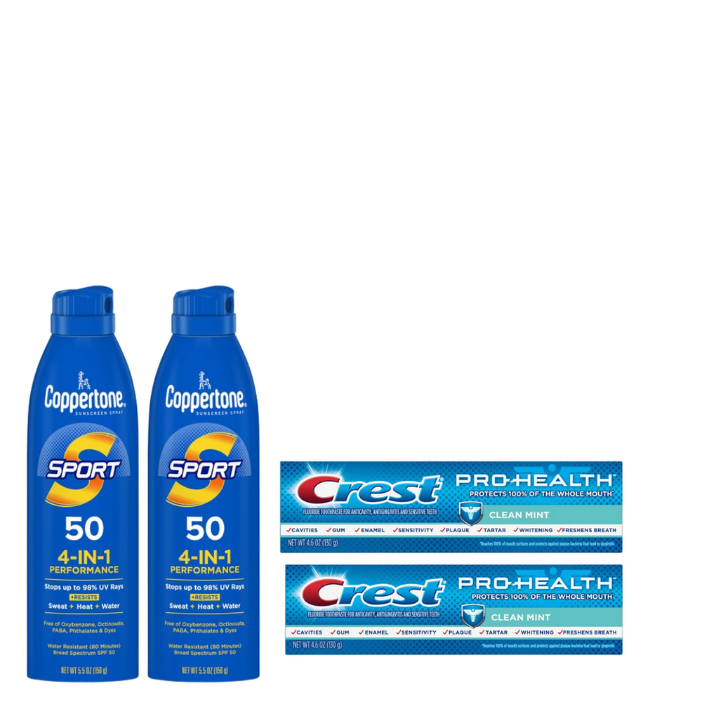 Score two Coppertone Sun and two Crest Pro Health for a final price of $6.52 after coupons and rewards. This has to be a pick up order or same day delivery because you are going to use the promocode SUMMER20 at checkout.