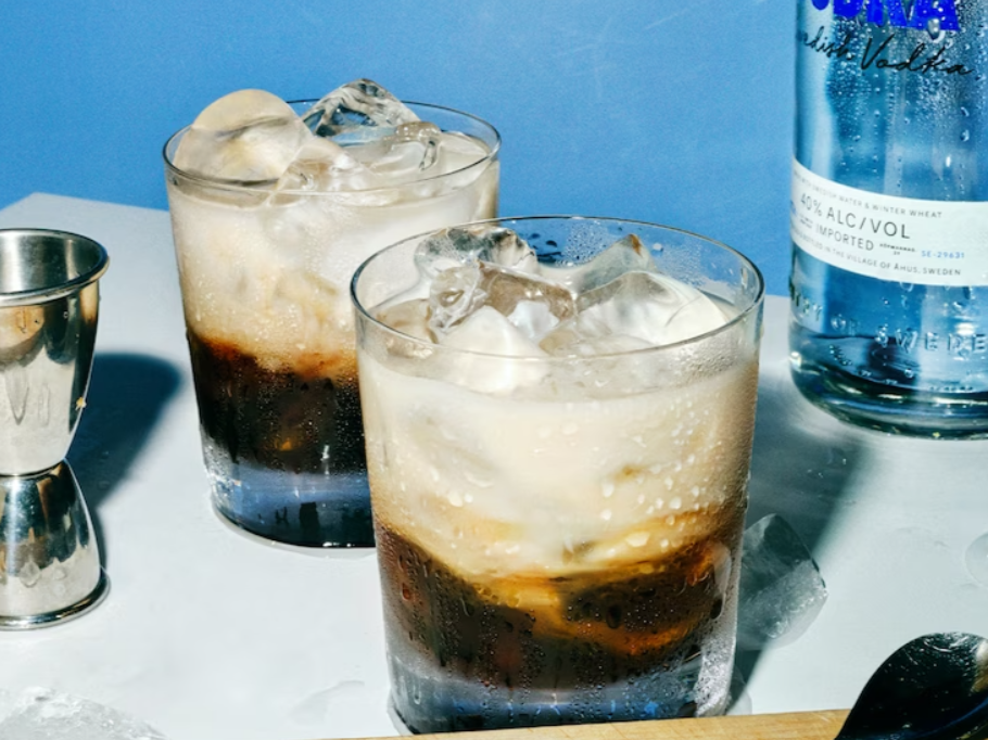 Fill a rocks glass with ice cubes. Add Absolut Vodka and Kahlúa, top off by adding a cream layer. Pour the cream on the back of a spoon to get the layering right. If you fail with the layering, just stir. It tastes just as good! Want a drink with less calories? Try it out with plant based or regular milk! Or try one of the other versions described below.