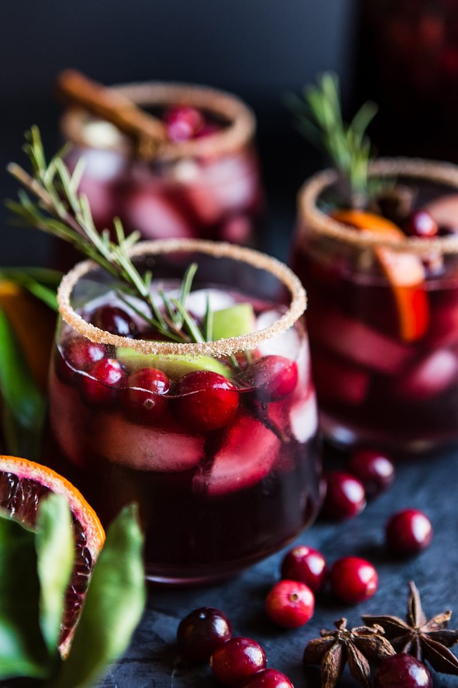 Sparkling and festive, this brandy-spiked ruby-red holiday sangria recipe brims with yuletide cheer.