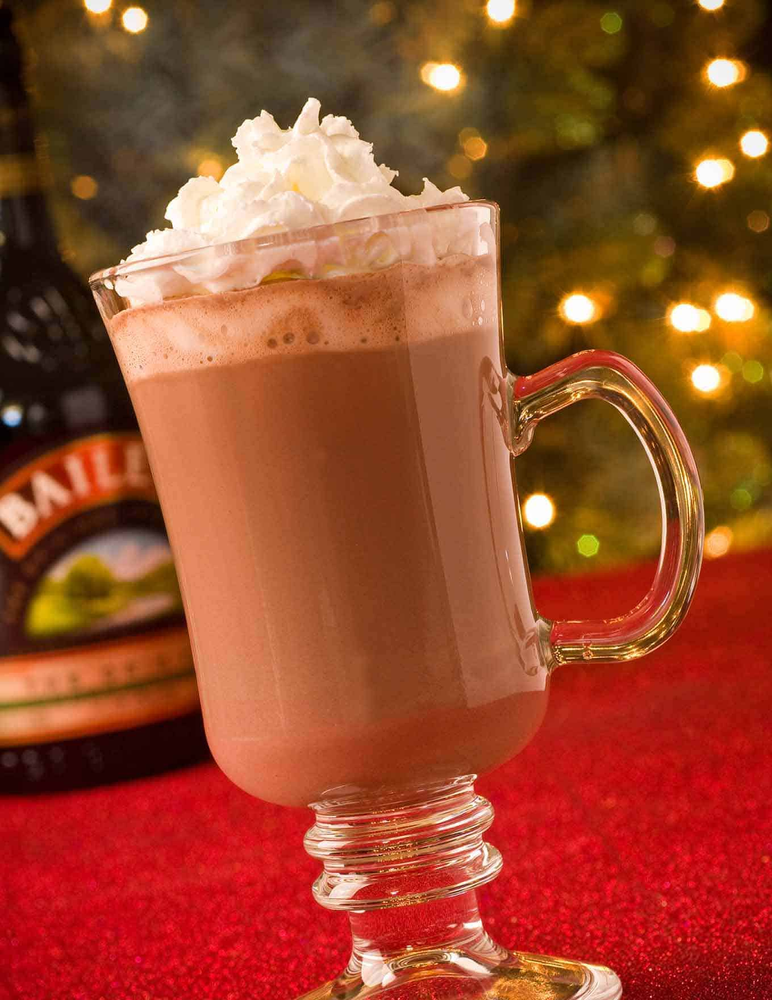Homemade hot chocolate spiked with a shot of Irish cream liqueur makes a tasty grown-up treat and a nice addition to a holiday get-together.
