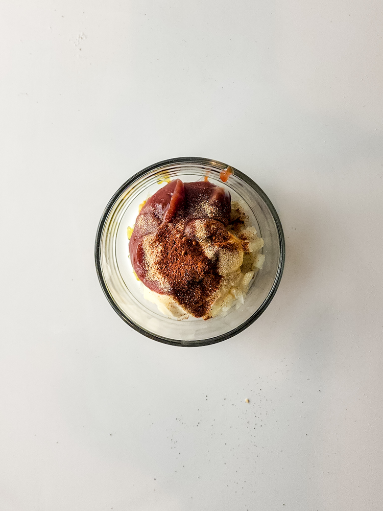 Start by making the big mac sauce. In a small mixing bowl add the mayo, diced onions, pickle relish, ketchup, mustard, garlic powder, paprika, cayenne, and white wine vinegar all at once.