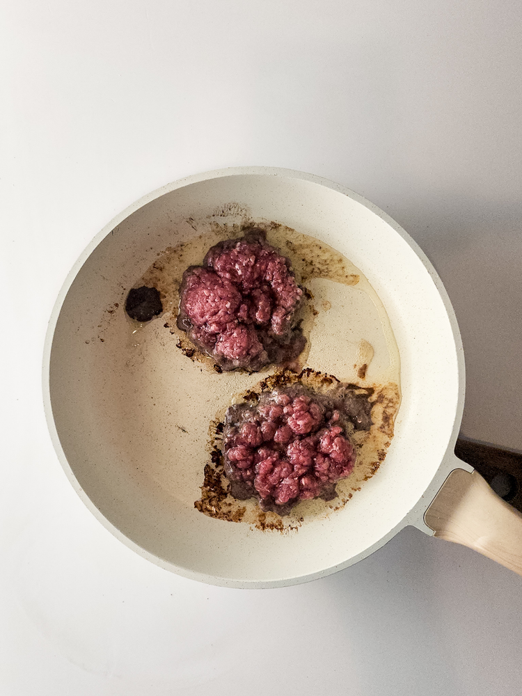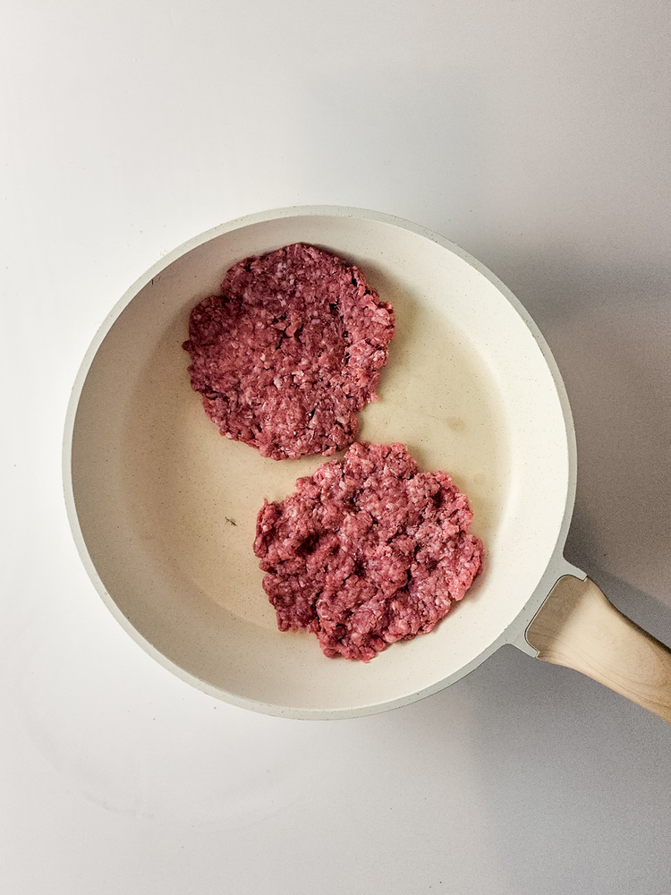 In a large bowl, add the ground beef, salt and pepper. Use clean hands to blend the seasonings into the meat until distributed. Divide the meat into 4 balls to create patties.