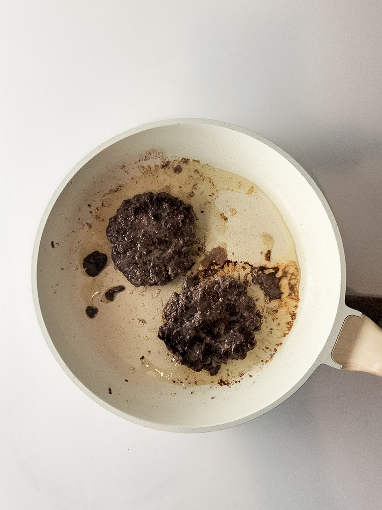Turn the stove on medium high heat and let the patties cook on the first side for about 5 minutes. Then flip and let cook for another 3 minutes on the other side.