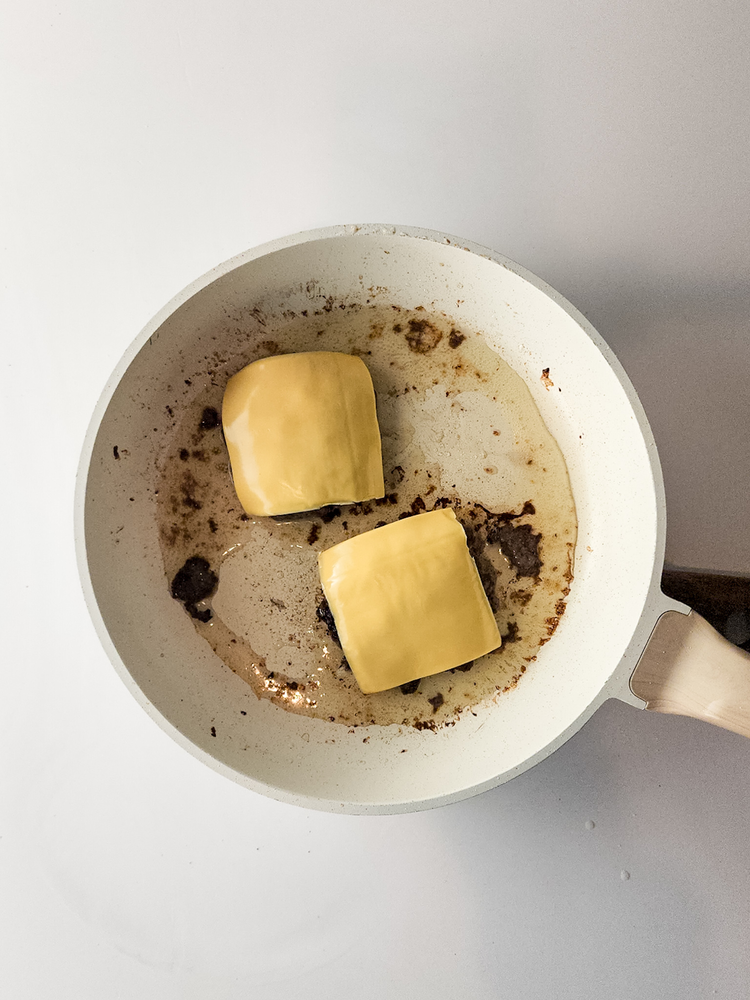 Remove from the heat and then place the cheese slices on top of each patty, letting it melt.