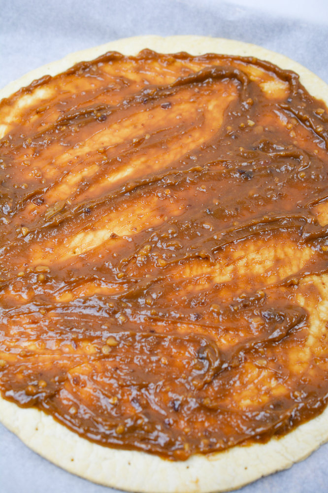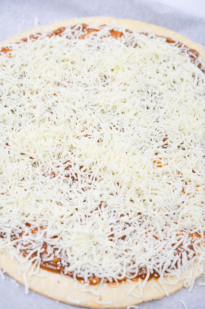 The recipe calls for store-bought pizza crust, but you can choose to make homemade pizza crust with a few simple ingredients.