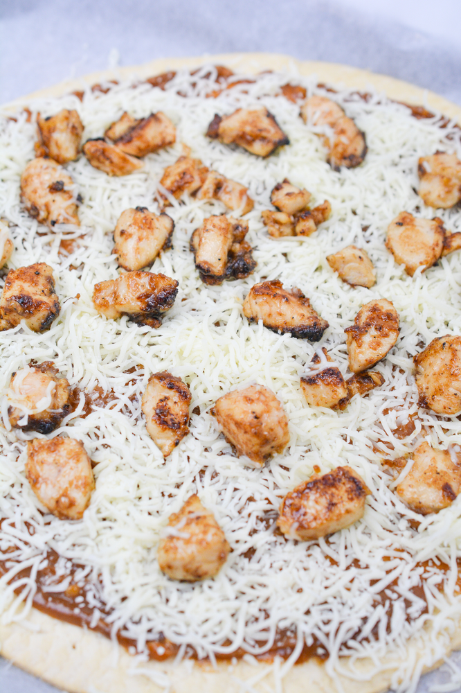 Sprinkle the chicken over the crust.