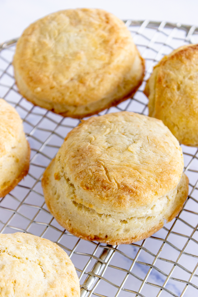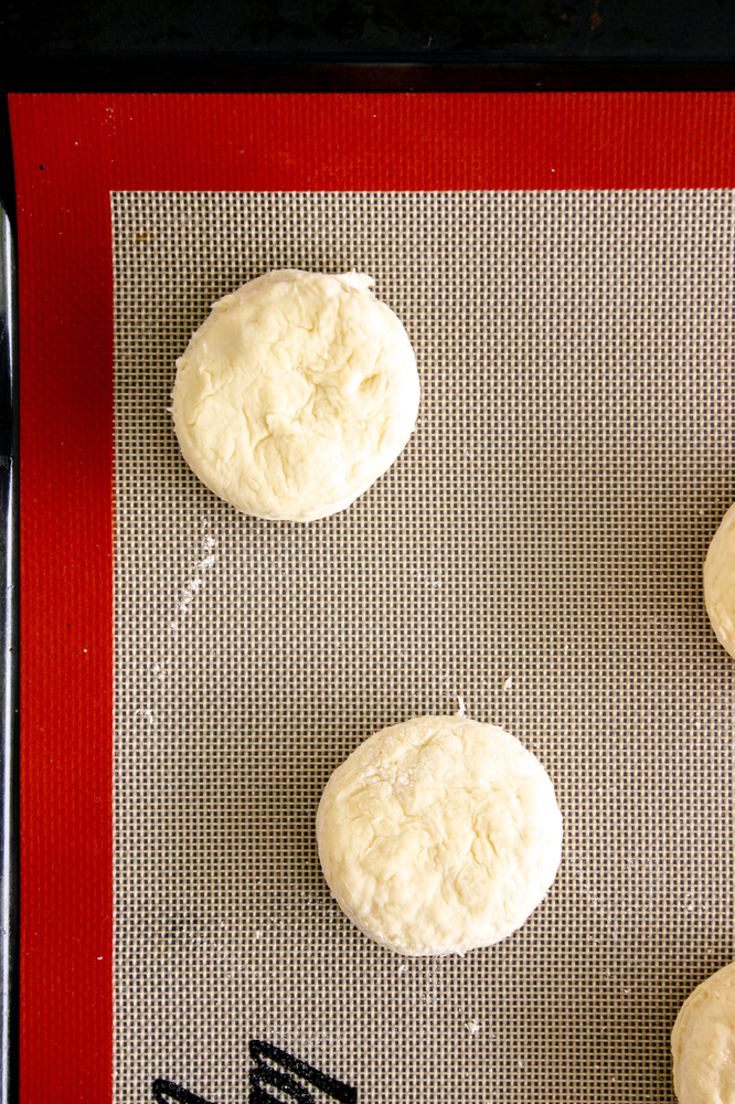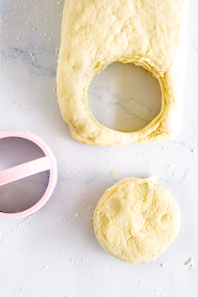 • Cut into biscuits using a 2½ to 3-inch round floured cookie cutter.