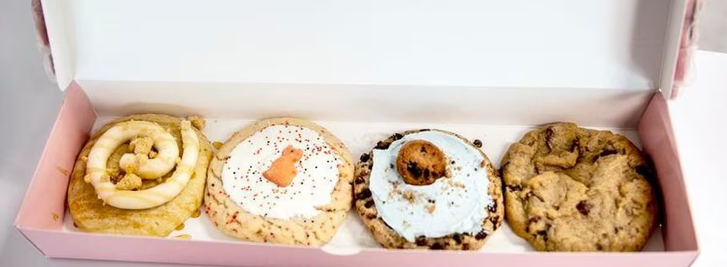 So what makes these cookies so special? It's not just their mouth-watering flavors or perfect texture that have attracted a cult-like following. It's also their unique business model of offering four new flavor combinations every week. Customers can visit the store or order online to try out the latest flavors and experience something new every time they visit.