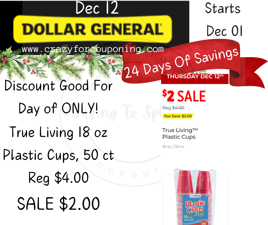 Thursday, December 12-True Living 18 oz Plastic Cups, 50 ct $2.00 reg $4.00