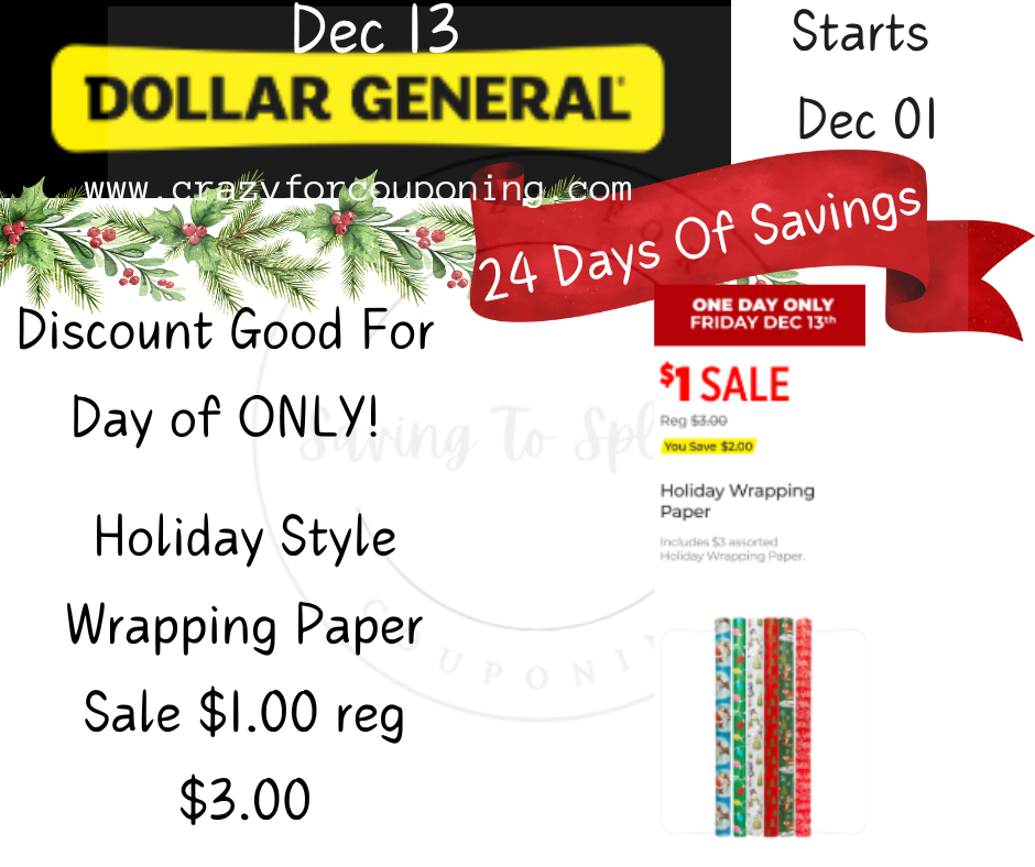 Friday, December 13-Holiday Style Wrapping Paper Sale $1.00 reg $3.00