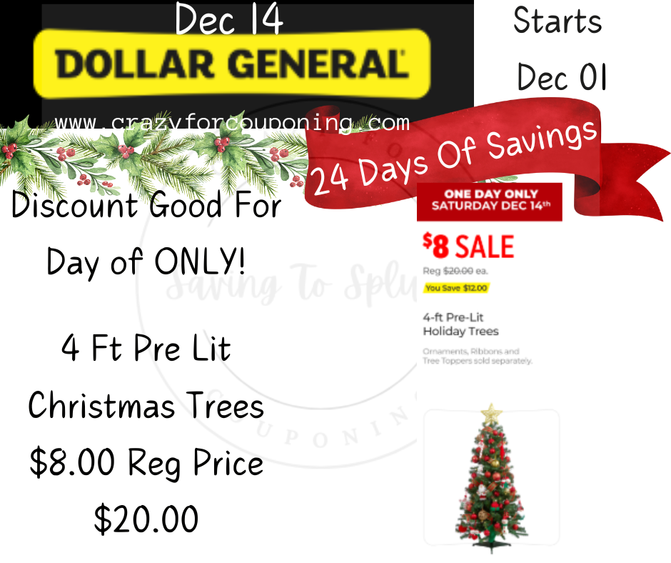 Saturday, December 14- 4 Ft Pre Lit Christmas Trees $8.00 Reg Price $20.00