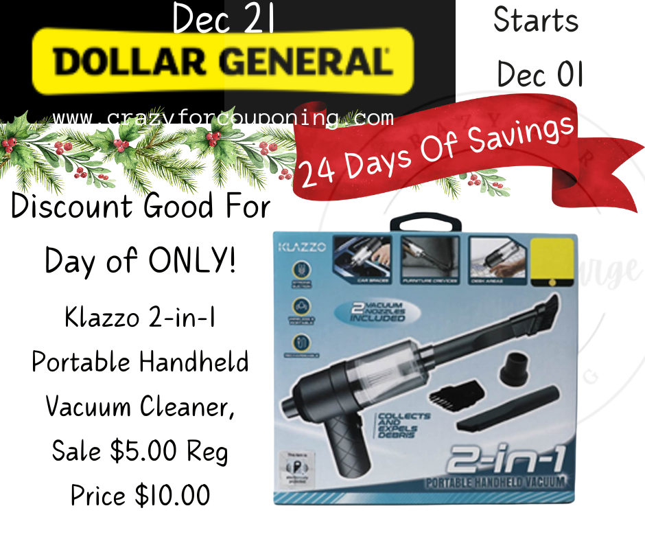 Saturday, December 21-Klazzo 2-in-1 Portable Handheld Vacuum Cleaner, 1 ct Sale $5.00 Reg Price $10.00