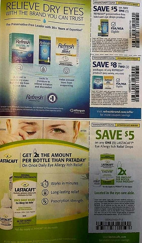 On 04/16/2023, you can expect two inserts in your Sunday papers. Remember that this list is a preview of what could be, each region can get differing coupons and different values. If you are looking for information on ordering coupons please contact Kristi Phillips our coupon supplier here by sending her a private message.