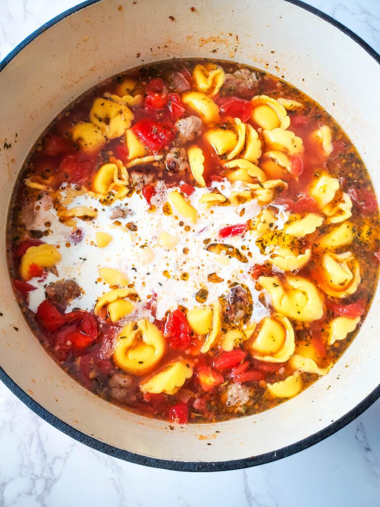 4. Add tortellini, reduce heat, and simmer for 5 minutes.