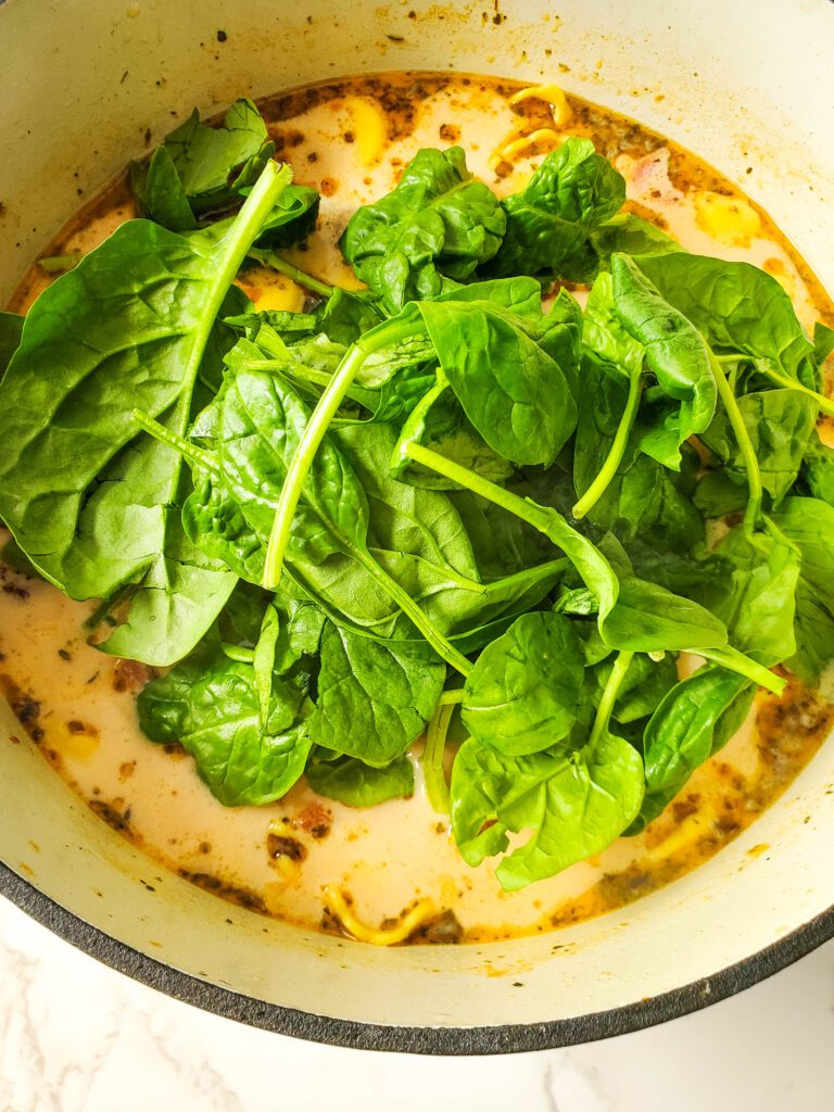 The perfect comfort food — this hearty soup combines sausage, tortellini, and spinach in a creamy tomato broth.