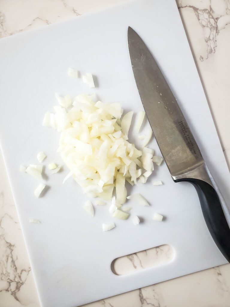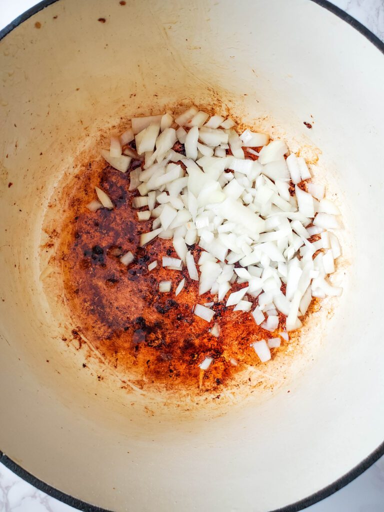 Remove sausage and set aside. Add diced onion to the same pot and cook for 5 minutes until softened.