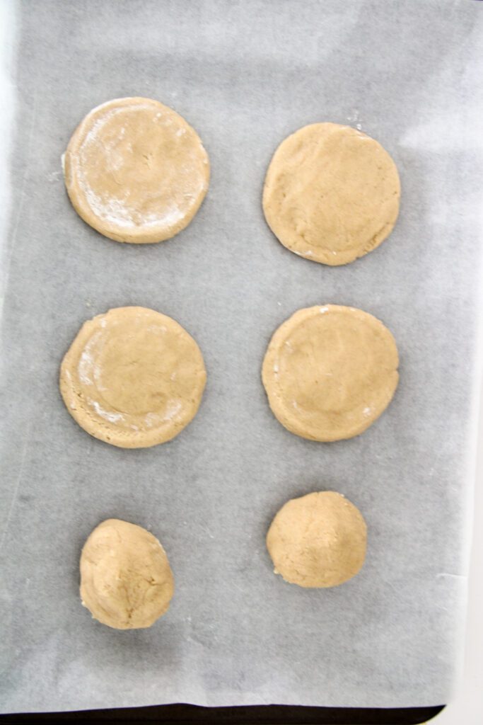 - 5 Using a 1/3 measuring cup, scoop cookie mix and roll into a ball. Flatten the cookie dough slightly and using a chopstick or thick toothpick make the honey bun swirl on each cookie