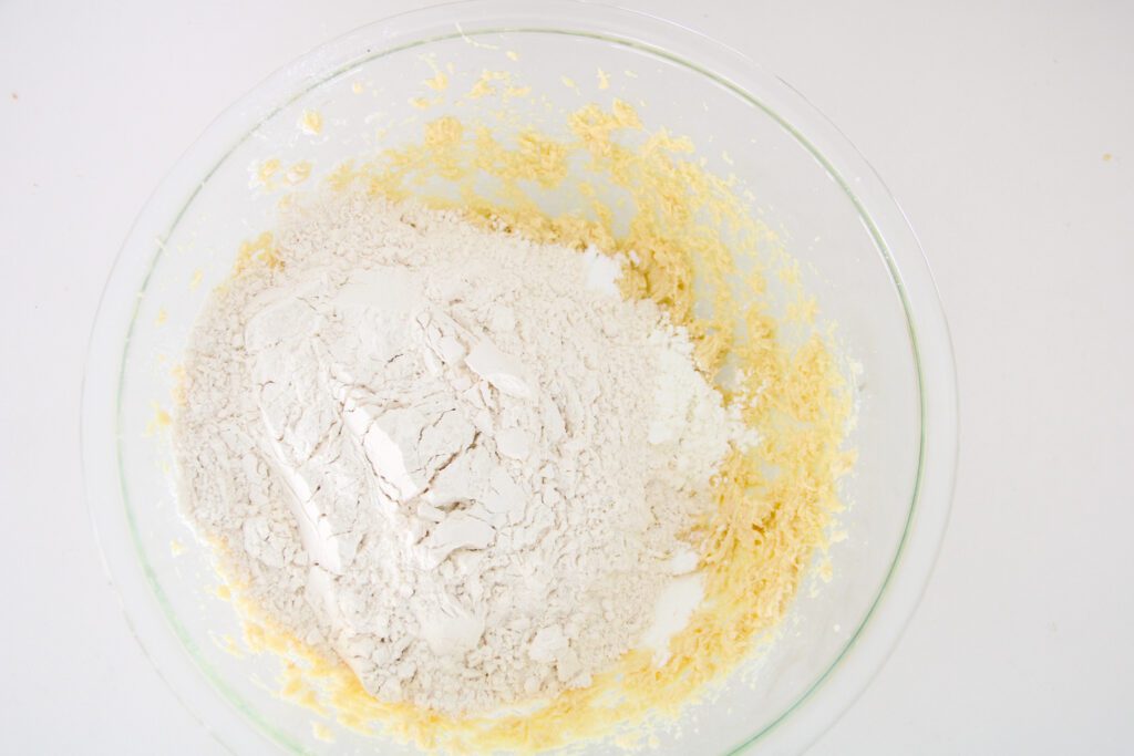 - Combine,flour,baking powder, cornstarch, baking soda and cinnamon until well combined