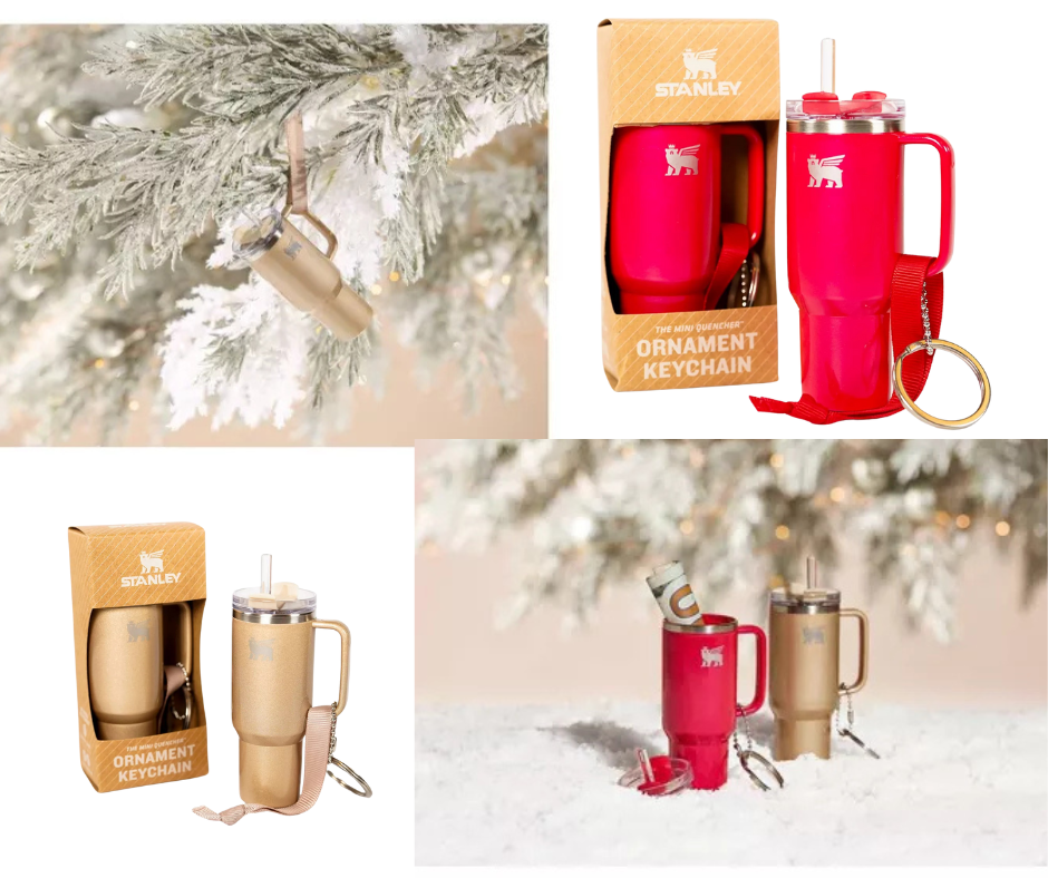 Stanley has launched adorable mini versions of their iconic tumblers as Christmas ornaments, now available at Target for $10 each. These mini ornaments come in Champagne Shimmer and Strawberry Red Shimmer, making them perfect for holiday décor. They can be used as tree ornaments, keychains, or even bag charms. The mini lid is removable, allowing you to tuck in small surprises inside. Given the popularity of Stanley products, these ornaments are likely to sell out fast, so grab yours while they last! GET YOURS HERE