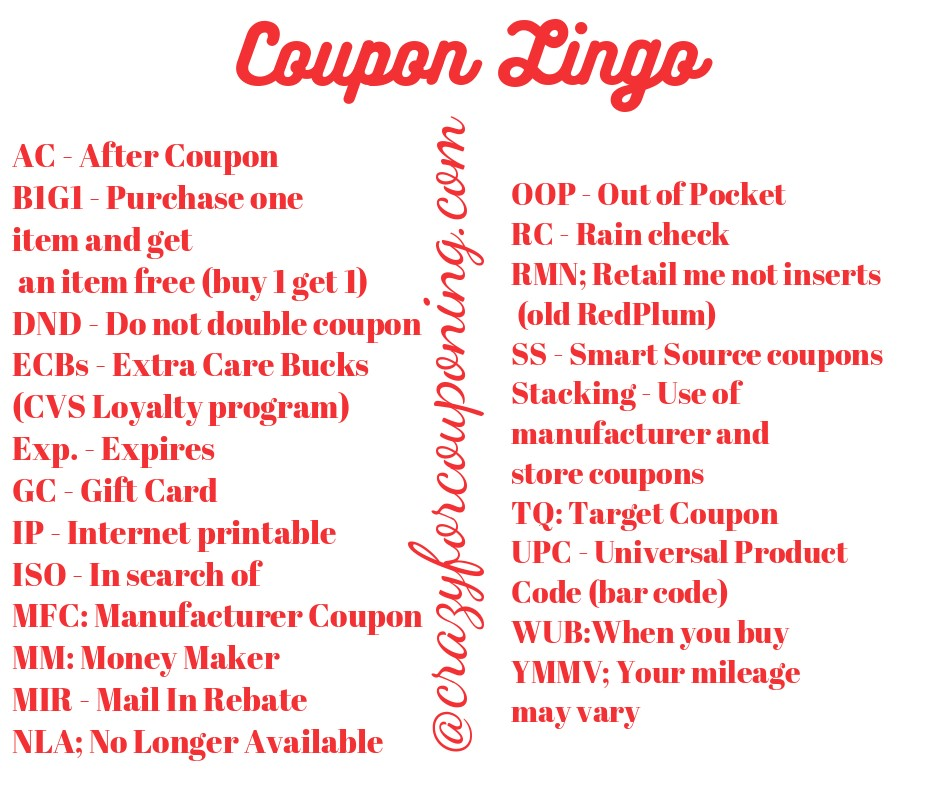 Coupon Lingo & Abbreviations