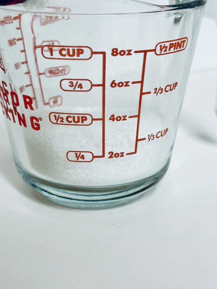 Next add ¼ cup of salt. (I just used the salt that I had in my kitchen)