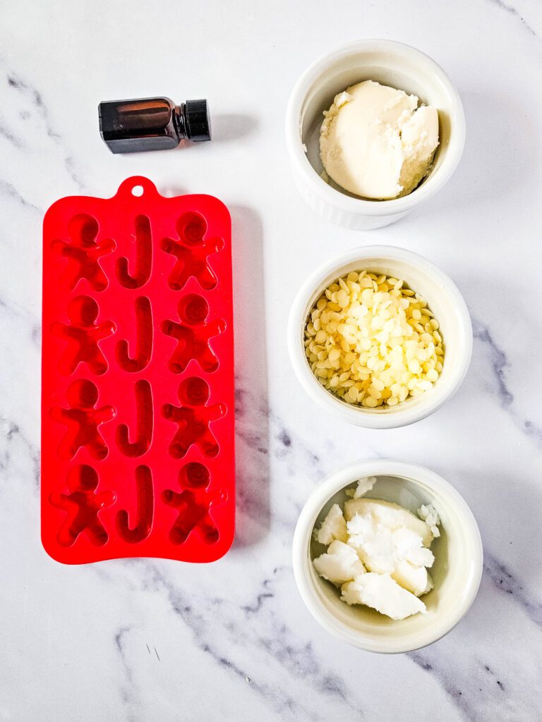 To create these holiday-inspired lotion bars, you’ll need the following: